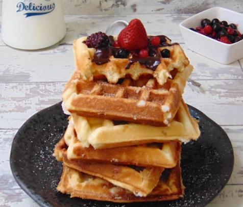 Este gofre grande y rectangular se diferencia por tener huecos cuadrados profundos para preparar gofres muy ligeros y crujientes de