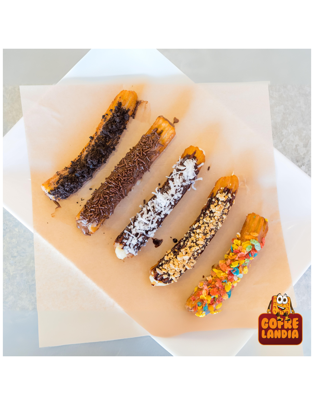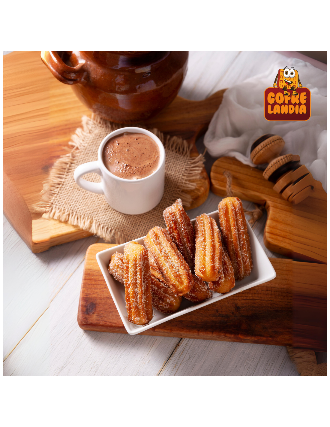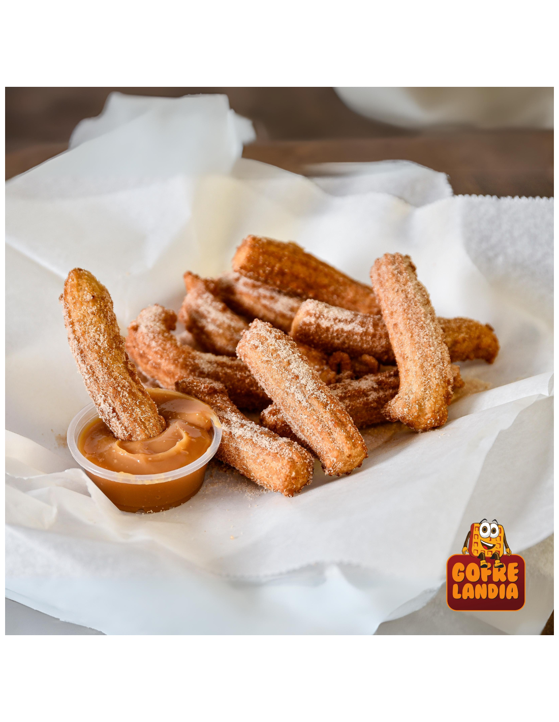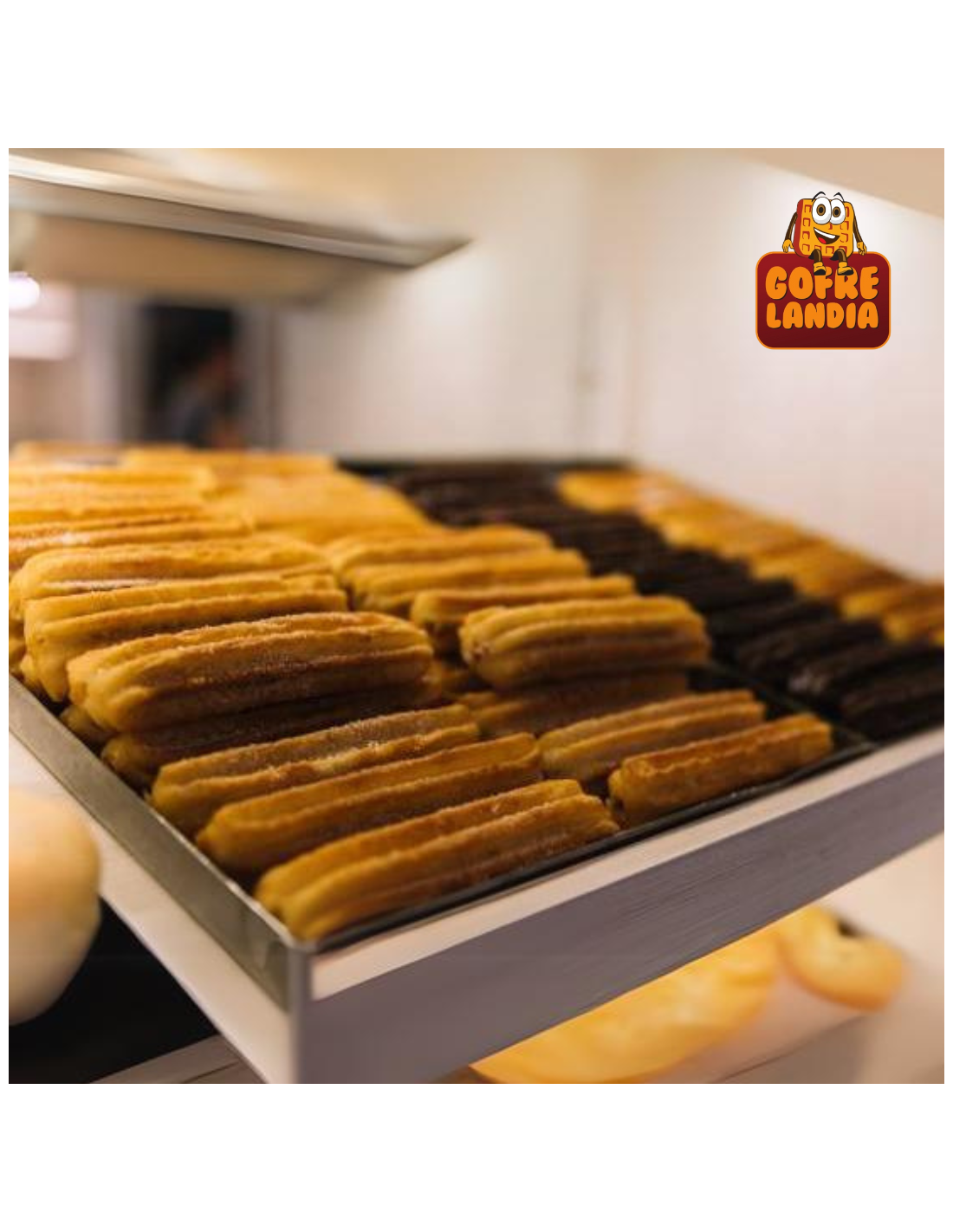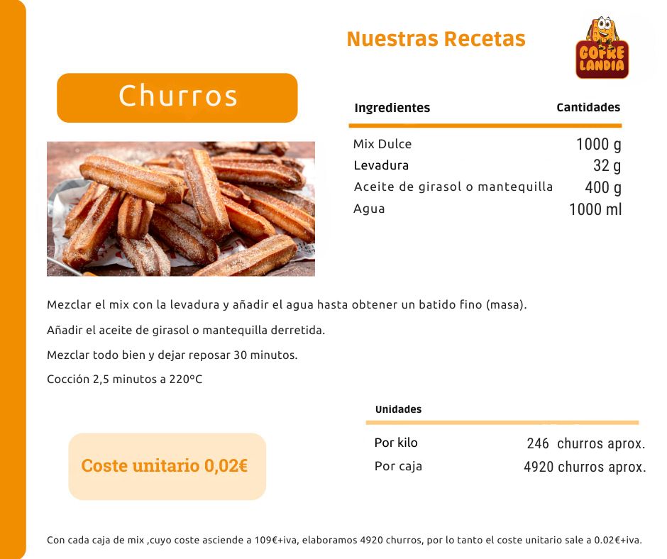 ✔ Churro sin aceite, elaborado en gofrera especial para una versión más ligera y saludable.