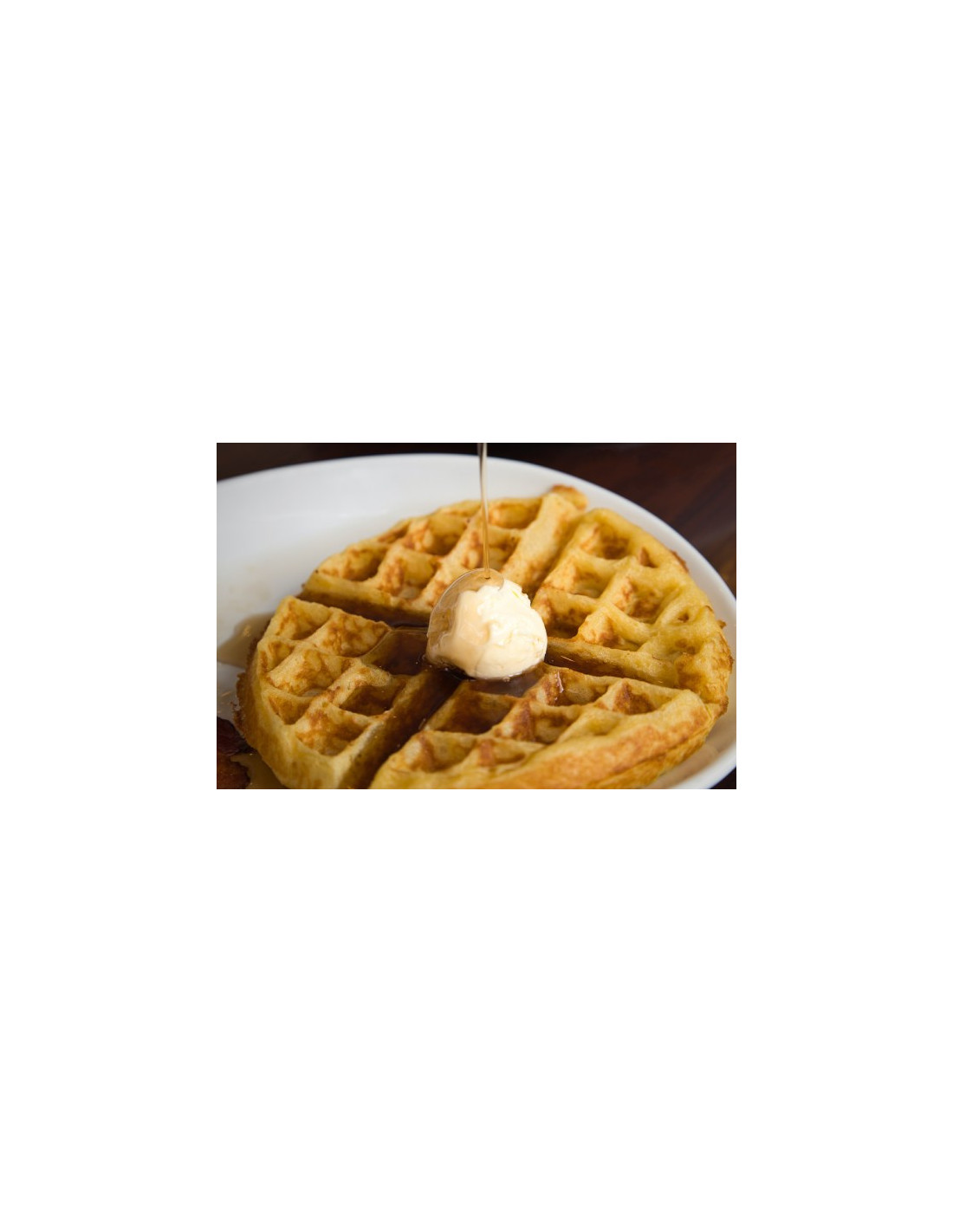 El gofre de Bruselas redondo se puede servir entero o por cuartos, en un plato de postre o como parte de un brunch.
