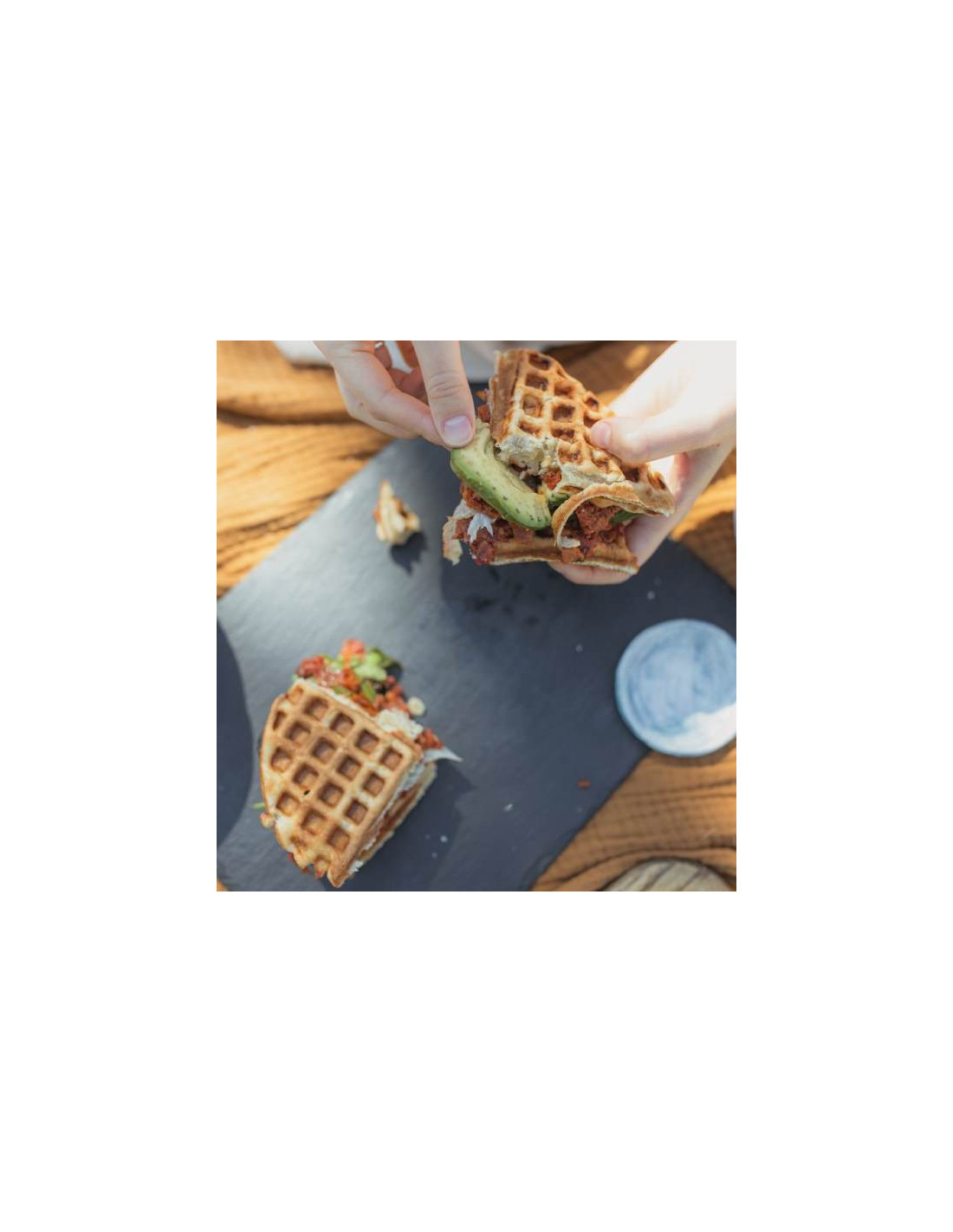 - Cuece 2 gofres redondos / 8 porciones triangulares