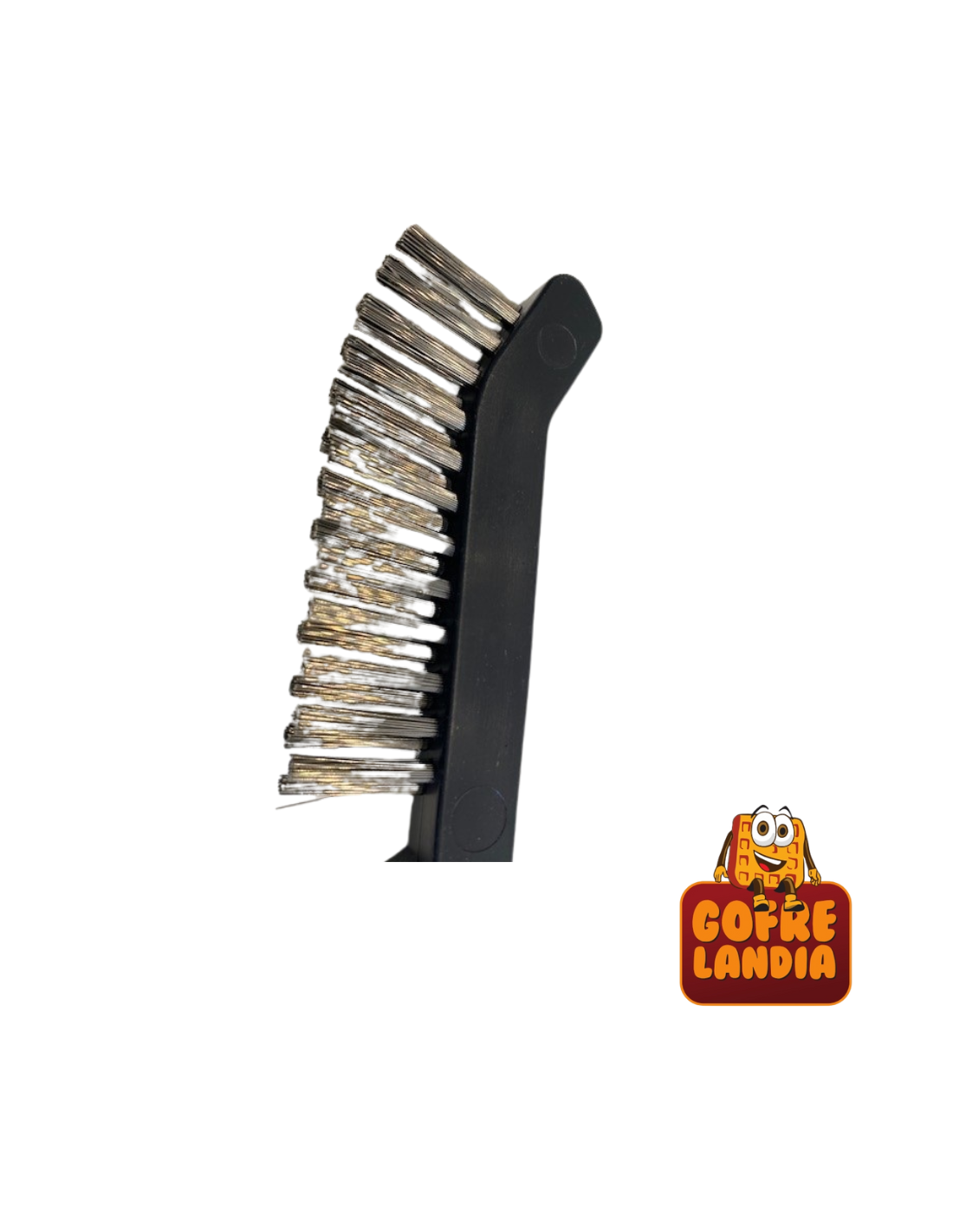 El cepillo de limpieza de acero inoxidable es ideal para limpiar placas de hierro fundido sin tratar o esmaltadas de las barbacoas, parrillas de contacto y gofreras.