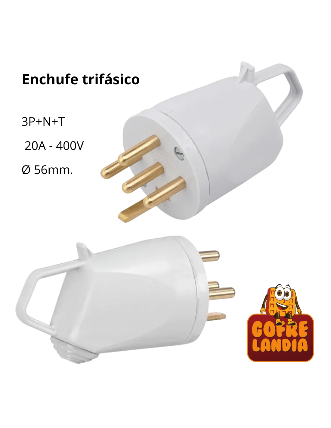 - 1 enchufe trifásico Tipo Plexo 20A 3P+N+E Ø 56mm.
