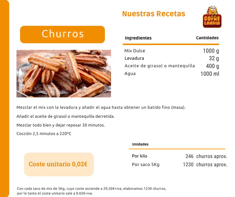 Mix profesional 5 Kg para Churro-gofre, sabor delicioso y estable. Elaboración sencilla que asegura siempre la misma calidad.