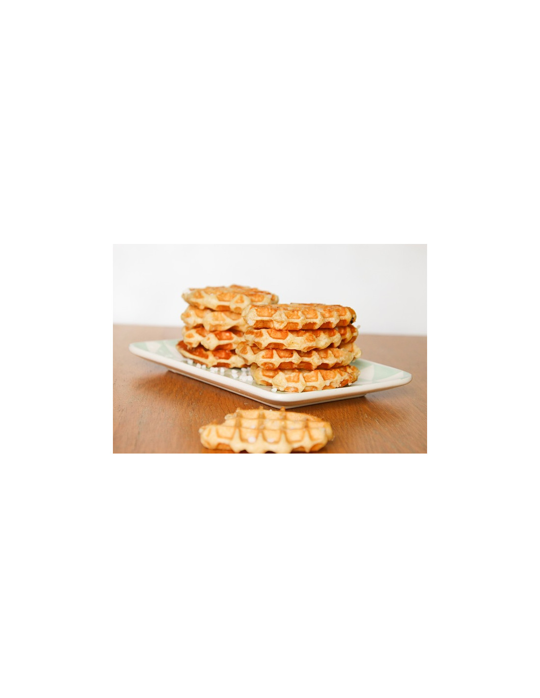 Al ser más grueso y más alargado que el gofre de Lieja clásico, el gofre 4×6 (molde de 4 cubos por 6) permite disfrutar aún más de su sabor. Este gofre típicamente belga está ligeramente caramelizado por fuera y es reconocible por su forma irregular y sus granos de azúcar perlado.
