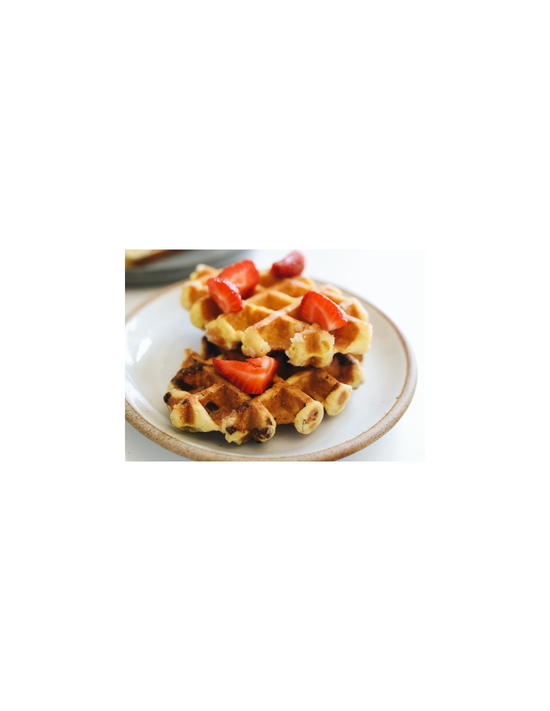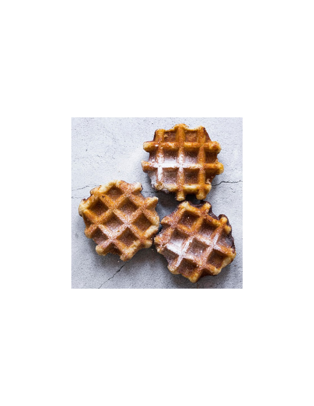 Este gofre típicamente belga está ligeramente caramelizado por fuera y es reconocible por su forma irregular y sus granos de azúcar perlado.
