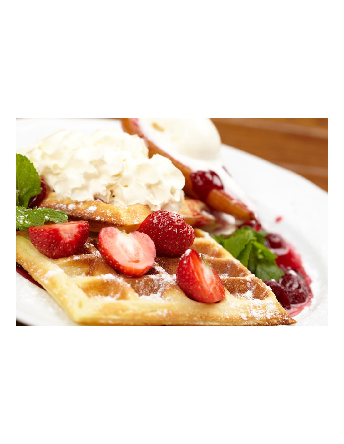 El gofre 4×7 (molde de 4 cubos por 7) es más fino y alargado que el gofre de Bruselas tradicional.