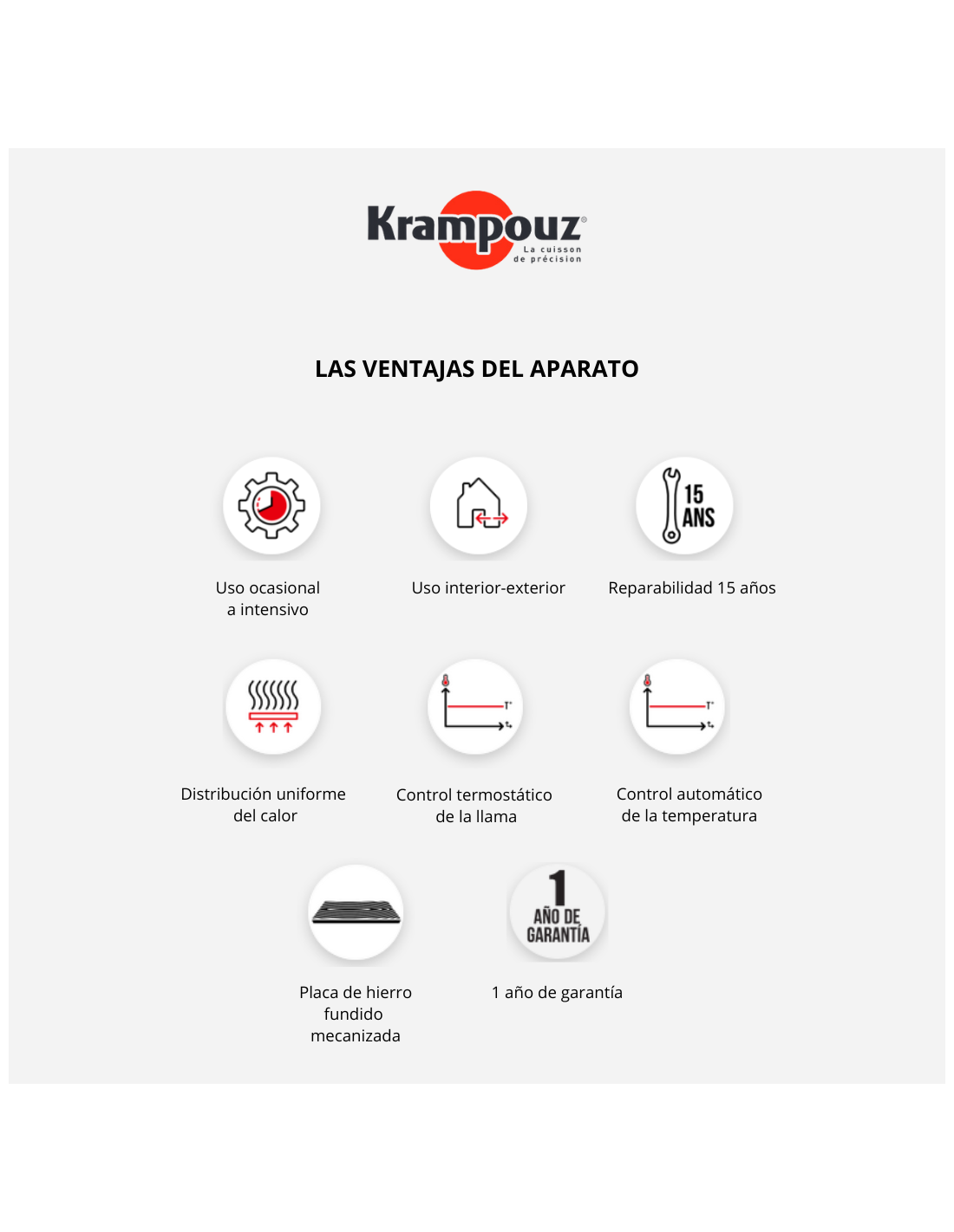 - Fabricación premium con tecnología exclusiva Krampouz desde 1949.